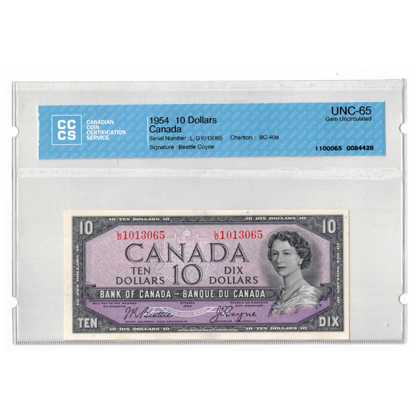 SOLD $10 1954 Bank of Canada Note Beattie-Coyne L/D Prefix BC-40a - CCCS UNC-65