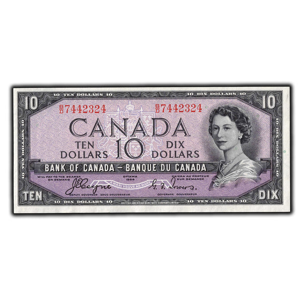 SOLD $10 1954 Bank of Canada Note Devil Face B/D Prefix BC-32a - Choice Uncirculated