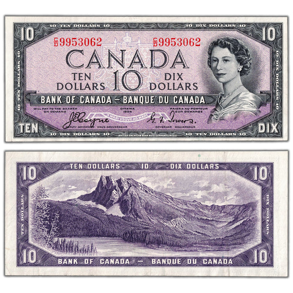SOLD $10 1954 Bank of Canada Note Devil Face C/D Prefix BC-32a - VF/EF (pressed) Country: Canada Year: 1954 Denomination: 10 Dollars Signatures: Coyne-Towers Prefix/Series: C/D Variety: Devil's Face Portrait...