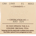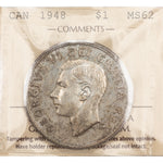 SOLD Canada 1948 $1 Silver Dollar Coin - Key Date - ICCS MS62 *Read Description