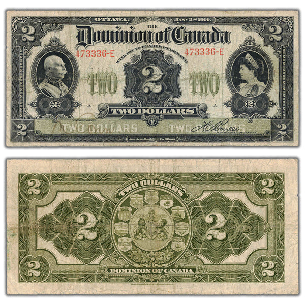 SOLD $2 1914 Dominion of Canada Note Series E DC-22a-i - Fine (pinholes)