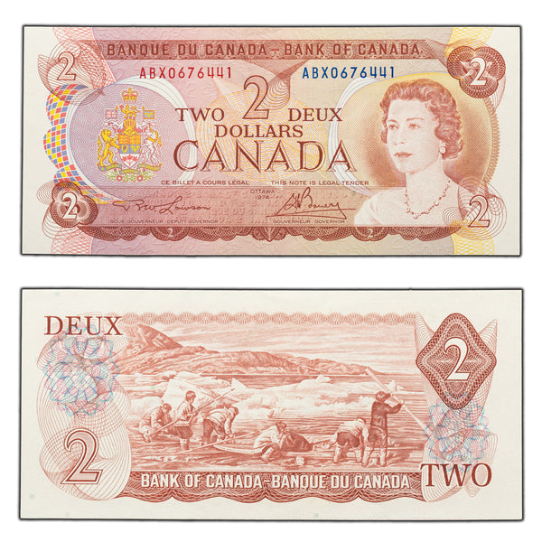 SOLD $2 1974 Bank of Canada Note ABX Replacement Prefix BC-47bA - AU