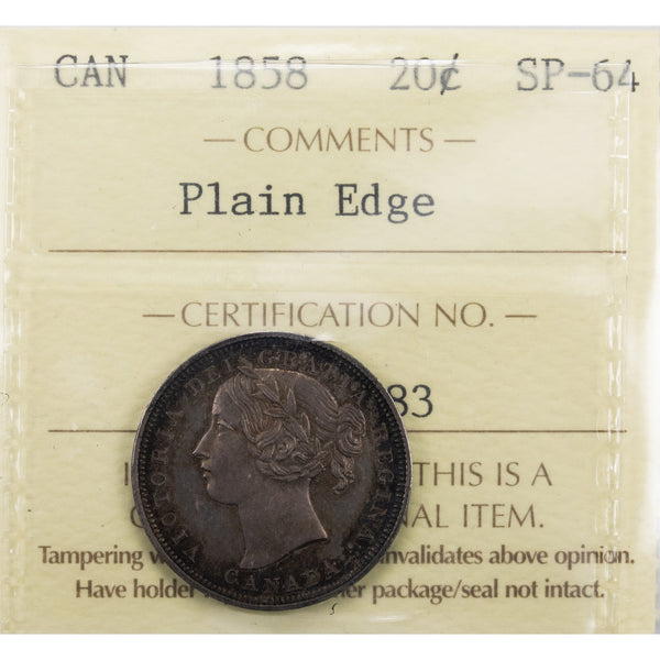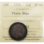SOLD Canada 1858 Plain Edge 20 Cents Silver Coin - ICCS Specimen SP-64