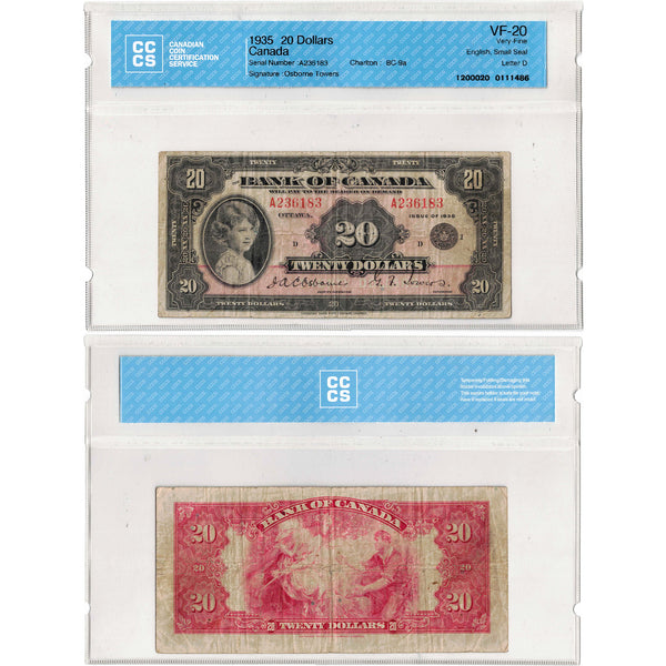 SOLD $20 1935 Bank of Canada Note English Text Small Seal BC-9b - CCCS VF-20