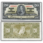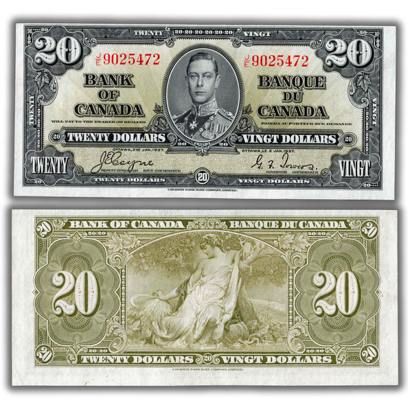 SOLD $20 1937 Bank of Canada Note Coyne-Towers J/E Prefix BC-25c - AU (cleaned)