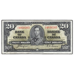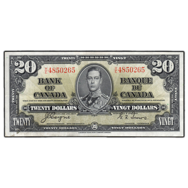 SOLD $20 1937 Bank of Canada Note H/E Changeover Prefix BC-25c - VF/EF