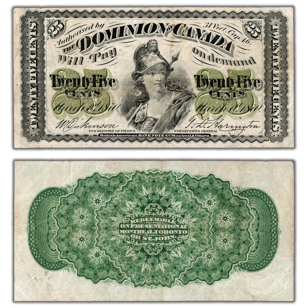 SOLD 25 Cents 1870 Dominion of Canada Shinplaster Note Plain DC-1c - VF+