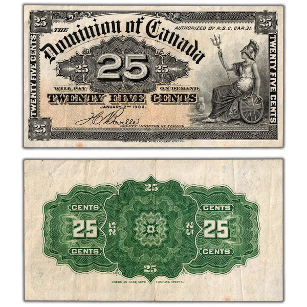 SOLD 25 Cents 1900 Dominion of Canada Shinplaster Note Boville DC-15b - VF/EF