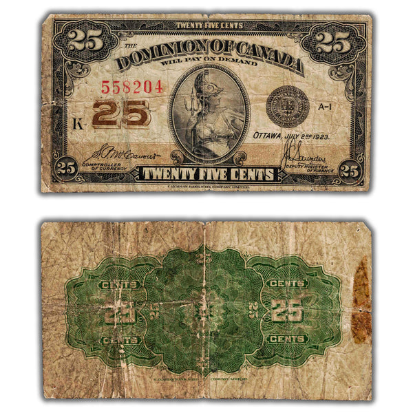 SOLD 25 Cents 1923 Dominion of Canada Shinplaster Note DC-24c - Pinholes/Residue
