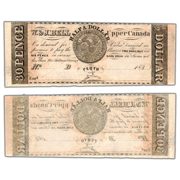 SOLD 30 Pence Half Dollar 1830's W&J Bell Upper Canada Note Remainder
