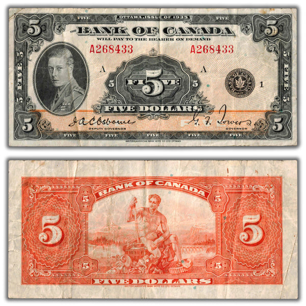 SOLD $5 1935 Bank of Canada Note English Text BC-5 - F/VF