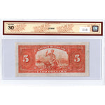 SOLD $5 1935 Banque du Canada Note French Text BC-6 - BCS VF-30