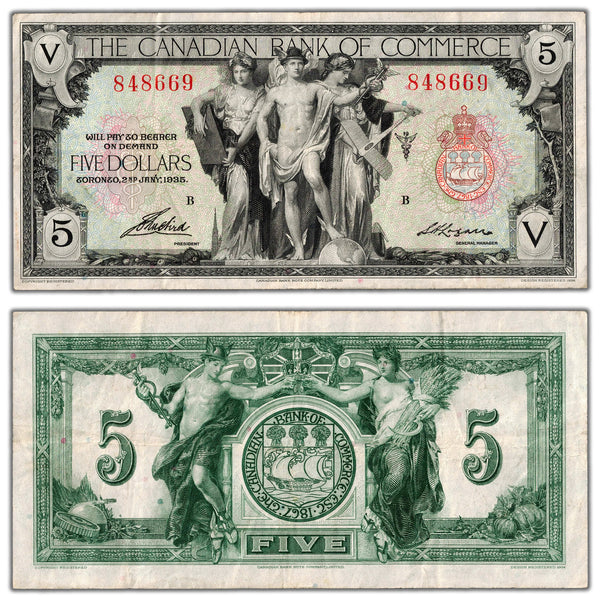 SOLD $5 1935 Canadian Bank of Commerce Canada Chartered Note #75-18-02 - VF/EF