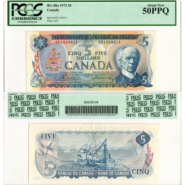 SOLD $5 1972 Bank of Canada Note Bouey-Rasminsky CC Prefix BC-48a - PCGS AU-50 PPQ