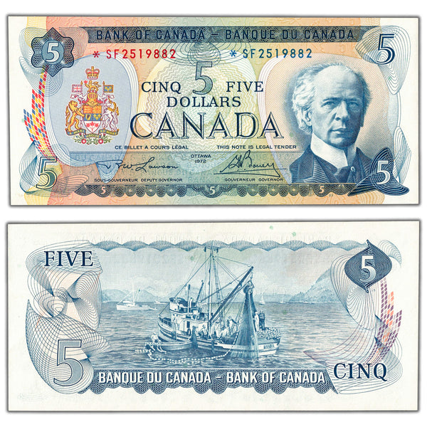 SOLD $5 1972 Bank of Canada Note *SF Replacement Prefix BC-48bA - Choice UNC