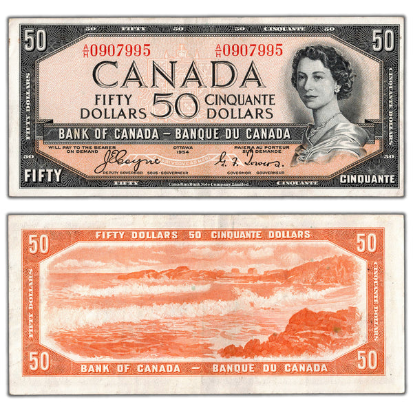 SOLD $50 1954 Bank of Canada Note Devil Face Coyne-Towers A/H Prefix BC-34a - VF/EF
