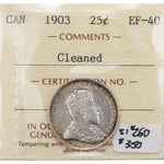 SOLD Canada 1903 25 Cents Quarter Silver Coin - ICCS EF-40 (cleaned)