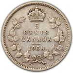 SOLD Canada 1908 Large 8 5 Cents Silver Coin - F-15