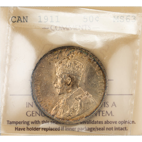 SOLD Canada 1911 50 Cents Half Dollar Silver Coin - ICCS MS-63