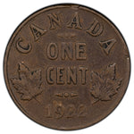 SOLD Canada 1922 1 Small Cent Coin - VG/F