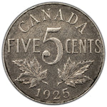 SOLD Canada 1925 5 Cents Nickel Coin Key Date! - Obverse Damage