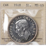 SOLD Canada 1948 $1 Silver Dollar Coin - ICCS MS-60