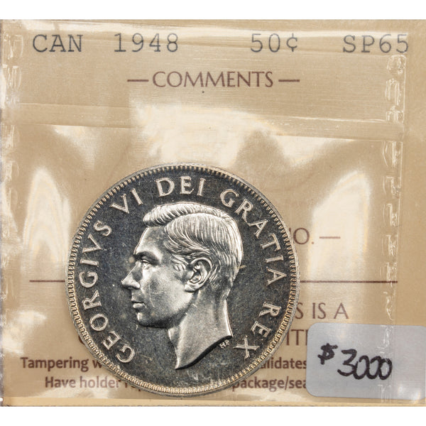 SOLD Canada 1948 50 Cents Half Dollar Silver Coin - ICCS Specimen SP-65