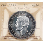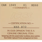 SOLD Canada 1949 $1 Silver Dollar Coin - ICCS MS-66