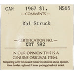 SOLD Canada 1967 Double Struck $1 Silver Dollar Coin - ICCS MS-65