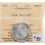 SOLD Canada 1952 Low Relief 25 Cents Quarter Silver Coin - ICCS MS-65