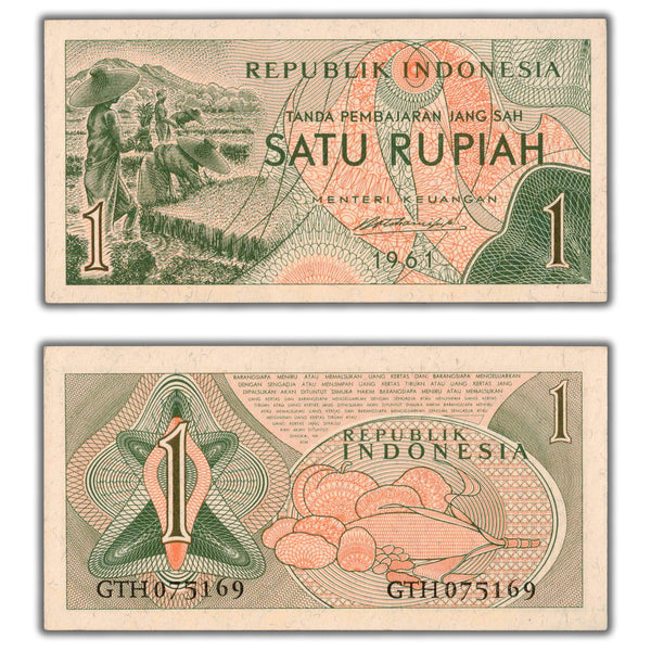 SOLD Indonesia 1961 1 One Rupiah Note P #78 - AU-58