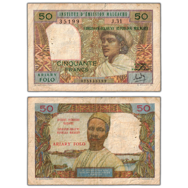 SOLD Madagascar ND (1969) 50 Fifty Francs Note P #61 - Pinholes/Tear