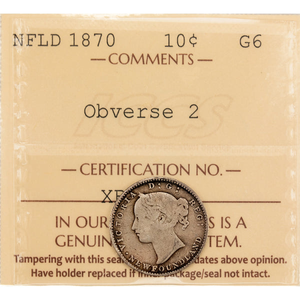 SOLD Newfoundland 1870 Obverse #2 10 Cents Silver Coin - ICCS G-6
