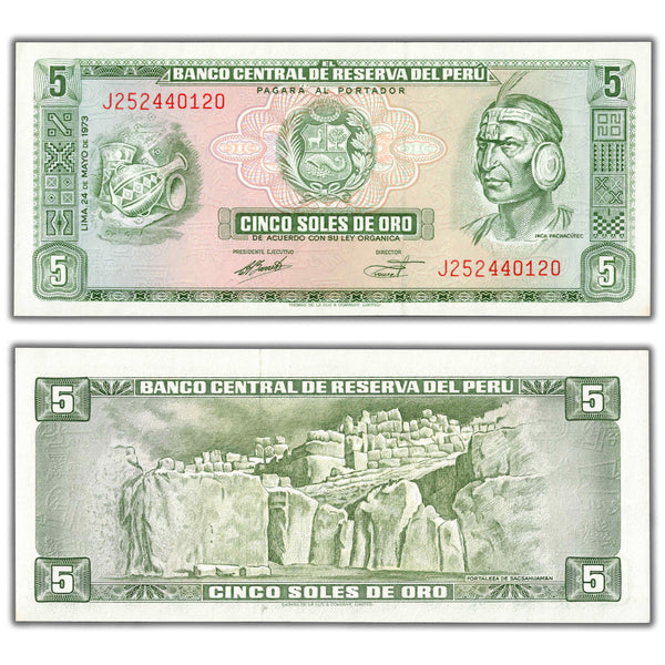 SOLD Peru 1973 5 Soles Note P #99c - Choice UNC