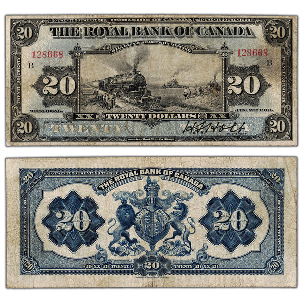 SOLD $20 1913 Royal Bank of Canada Chartered Note #630-12-10 - Fine