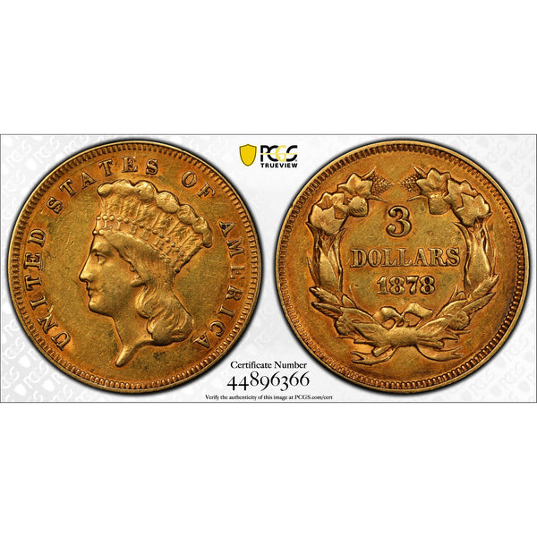SOLD United States 1878 $3 Gold Coin - PCGS AU-50
