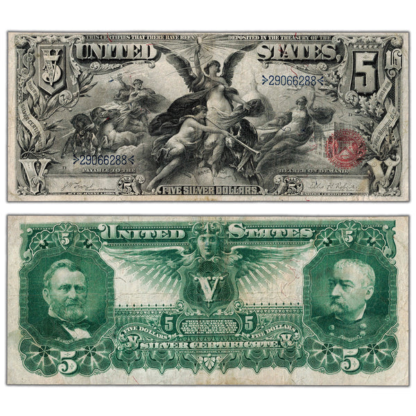 SOLD United States 1896 $5 "Educational" Silver Certificate Note - VF+ (lightly trimmed)