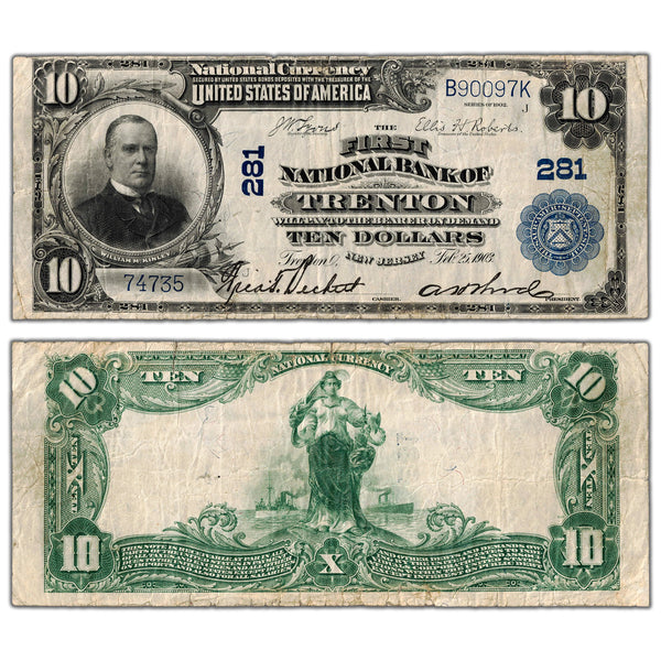 SOLD United States 1902 $10 Bank of Trenton NJ #281 National Note - Circulated Country: United States Year: 1902 Denomination: 10 Dollars Prefix/Series: Variety: National Bank - Trenton, NJ #281...