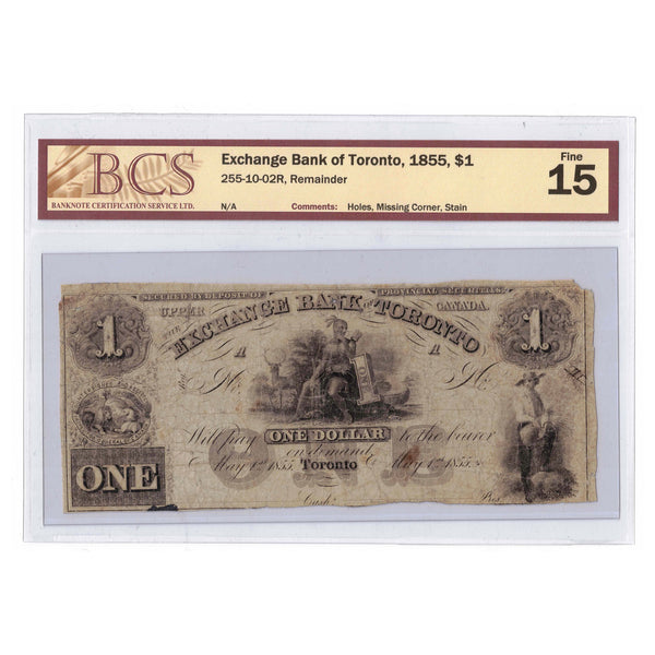 SOLD $1 1855 Exchange Bank Of Toronto Note - BCS F-15 Remainder