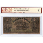 Available for sale is a $1 1897 Dominion of Canada Note DC-12 - BCS G-4