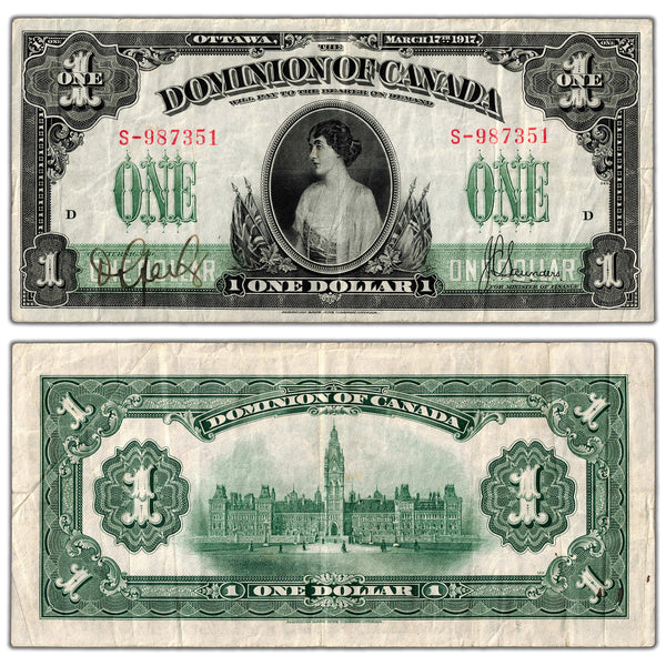 $1 1917 Dominion of Canada Note Saunders No Seal Series S DC-23b - VF