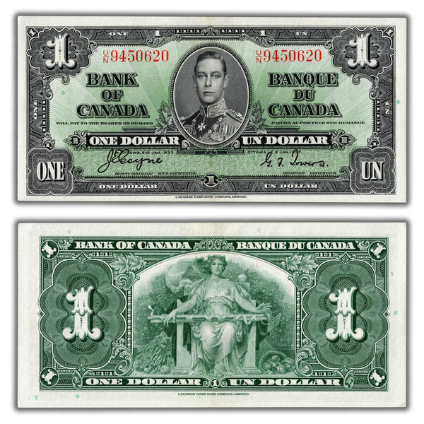 $1 1937 Bank of Canada Note Coyne-Towers U/N Prefix BC-21d - AU/UNC