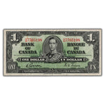 $1 1937 Bank of Canada Note Gordon-Towers N/M Prefix BC-21c - VF (minor edge tear)