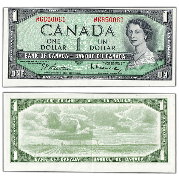 $1 1954 Bank of Canada Note D/P Prefix BC-37b-i - Cutting Error AU
