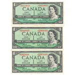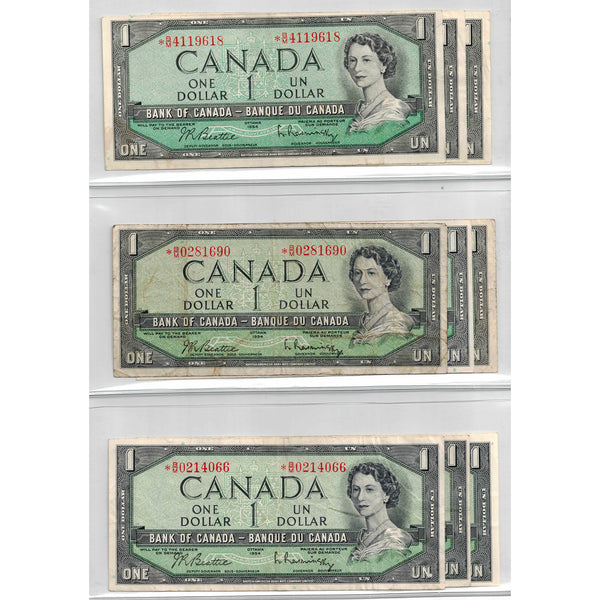 Lot of 9 $1 1954 Bank of Canada Replacement *B/M Prefix - All Circulated Grades