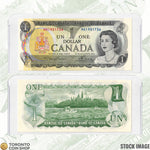 Available for sale is a $1 1973 Bank of Canada Note Lawson-Bouey Signatures 2 Letter Prefix - Uncirculated STOCK IMAGES. The notes are all individually packaged in a protective holder...