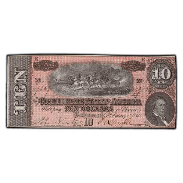 SOLD United States 1864 $10 Confederate States of America Note - Crisp Example