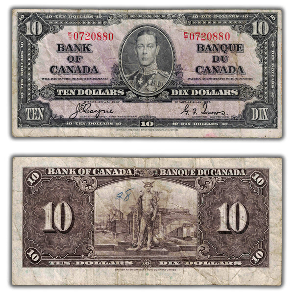 $10 1937 Bank of Canada Note Coyne-Towers E/T Prefix BC-24c - Writing