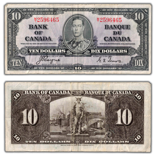 SOLD $10 1937 Bank of Canada Note Coyne-Towers M/T Prefix BC-24c - VF