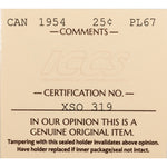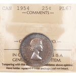 Canada 1954 25 Cents Quarter Silver Coin - ICCS Proof-Like PL-67